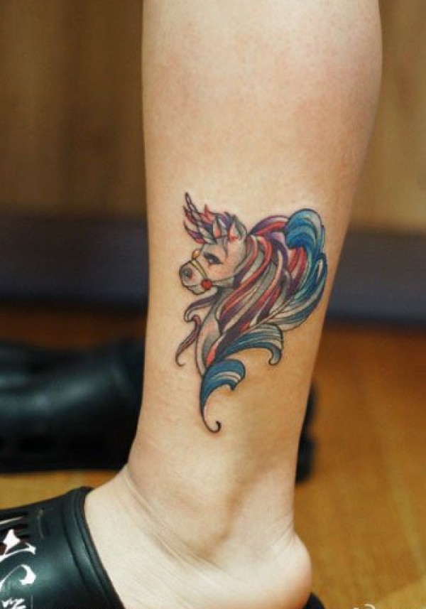 腿部独角兽纹身图案_腿部纹身图案大全_纹身图吧