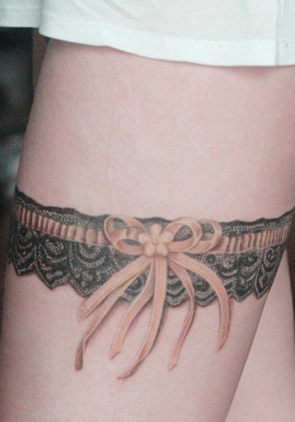 美女腿部精美的蕾丝纹身_腿部纹身图案大全_纹身图吧