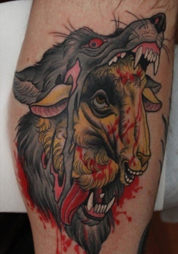 腿部超酷狼头纹身_腿部纹身图案大全_纹身图吧