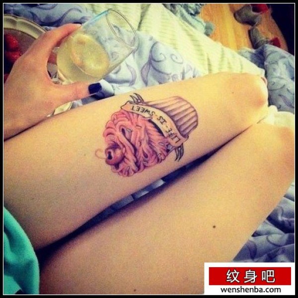 腿部可爱的蛋糕纹身图案_腿部纹身图案大全_纹身图吧