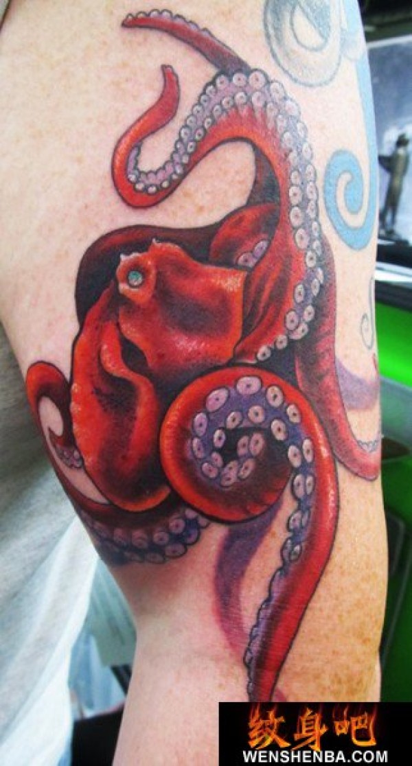 大腿红色大章鱼_腿部纹身图案大全_纹身图吧