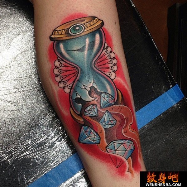 小腿钻石沙漏纹身_腿部纹身图案大全_纹身图吧
