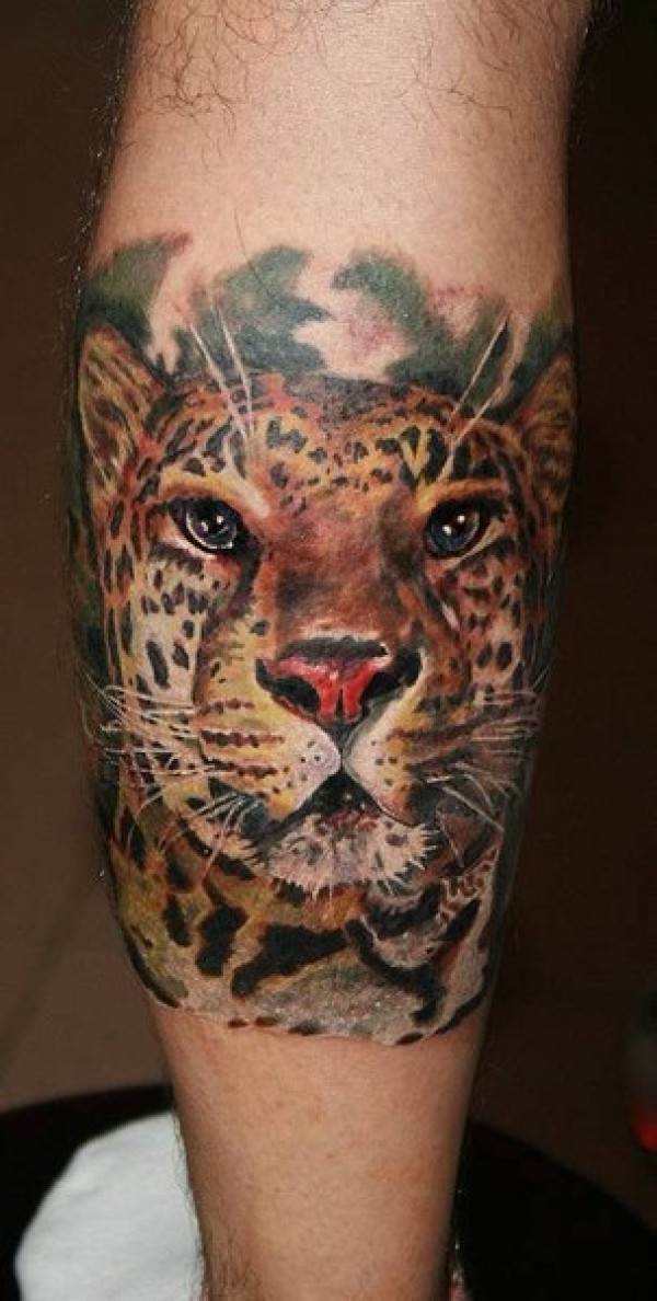 小腿彩色猎豹_腿部纹身图案大全_纹身图吧