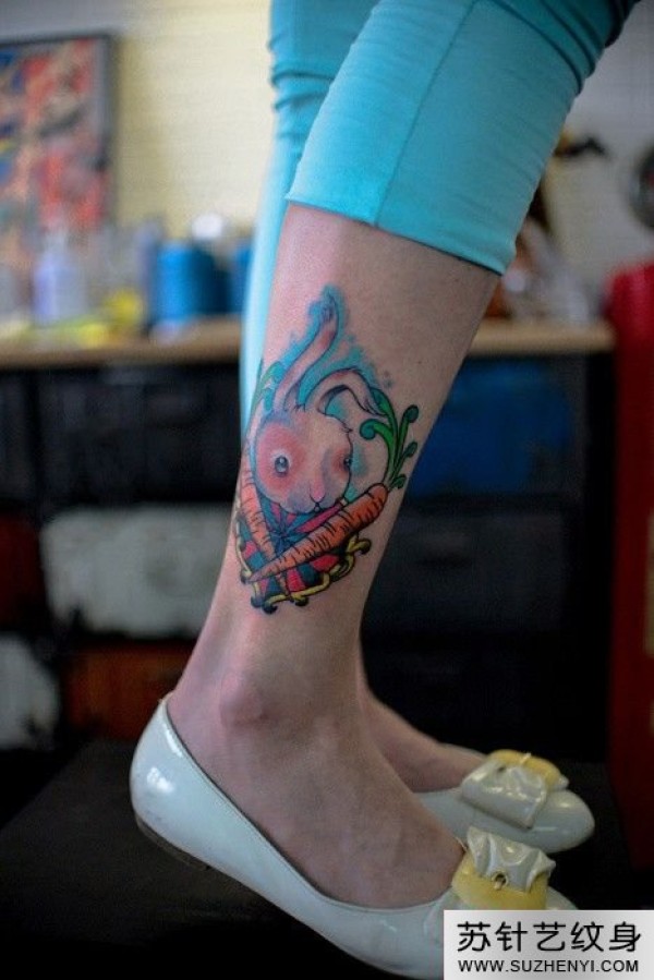 小白兔吃萝卜腿部刺青_腿部纹身图案大全_纹身图吧