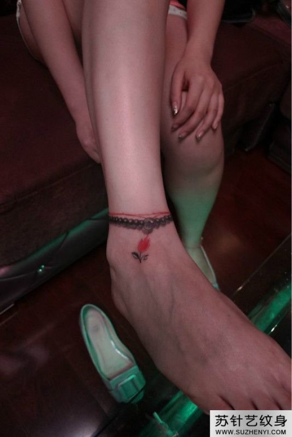 小腿创意脚链纹身_腿部纹身图案大全_纹身图吧