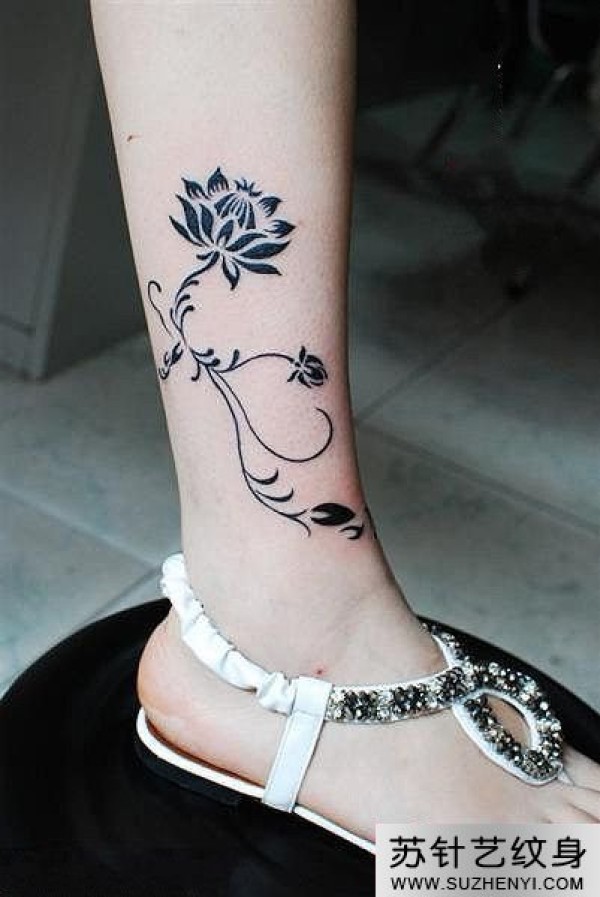 清丽莲花小腿刺青_腿部纹身图案大全_纹身图吧