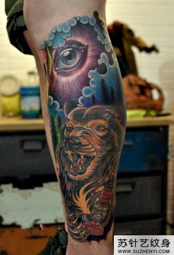大棕熊腿部纹身_腿部纹身图案大全_纹身图吧