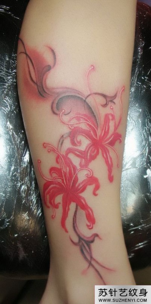 小腿彼岸花时尚纹身_腿部纹身图案大全_纹身图吧