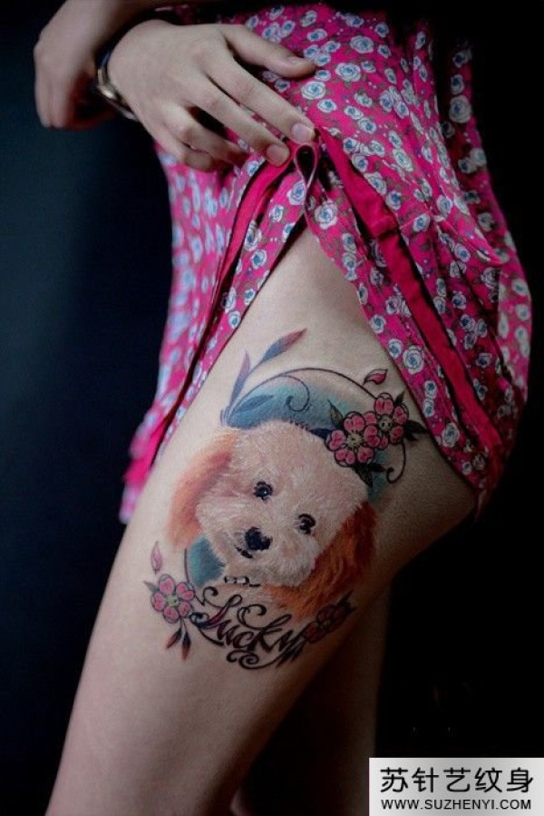 大腿宠物狗刺青_腿部纹身图案大全_纹身图吧