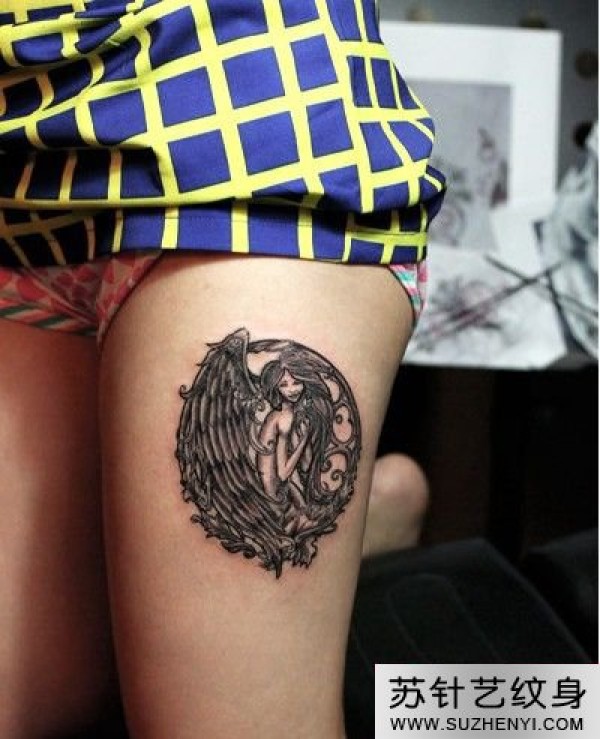 大腿欧式精灵纹身_腿部纹身图案大全_纹身图吧