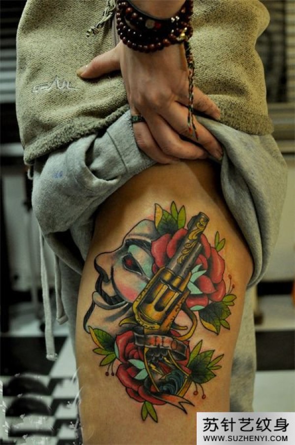 腿部手枪纹身_腿部纹身图案大全_纹身图吧