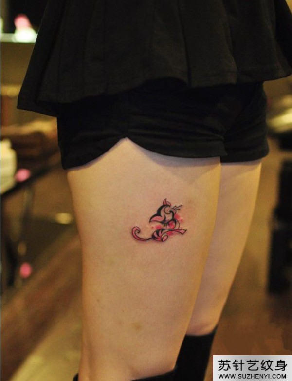 大腿性感猫咪纹身_腿部纹身图案大全_纹身图吧