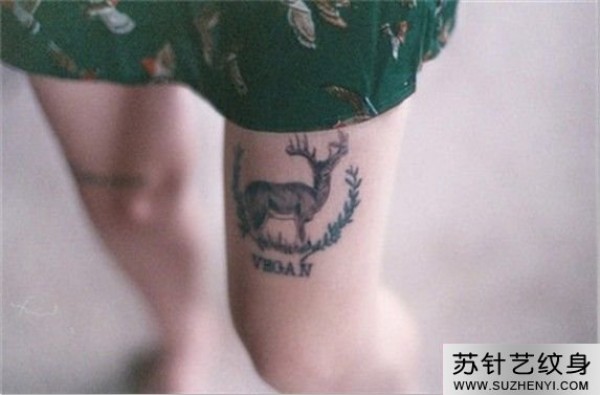 大腿麋鹿纹身_腿部纹身图案大全_纹身图吧