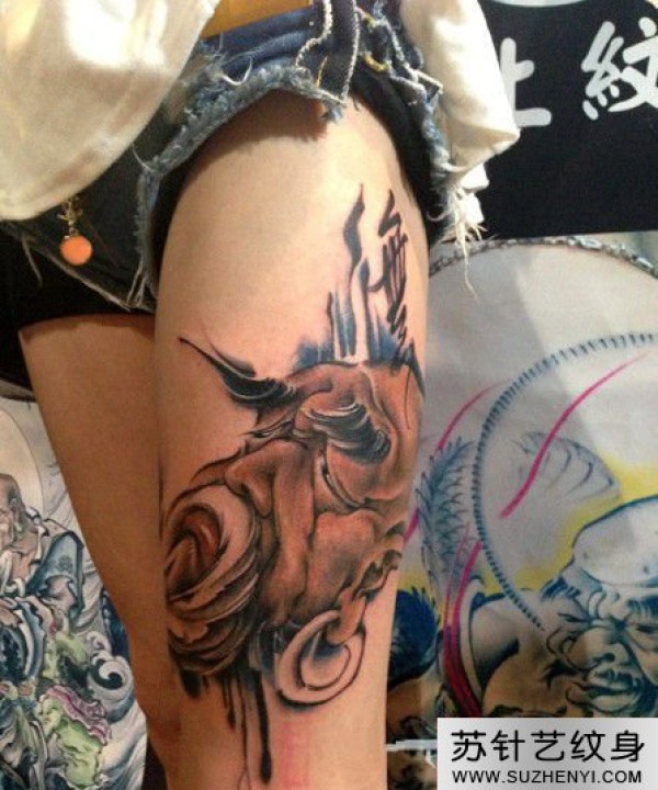 大腿个性老寿星纹身_腿部纹身图案大全_纹身图吧