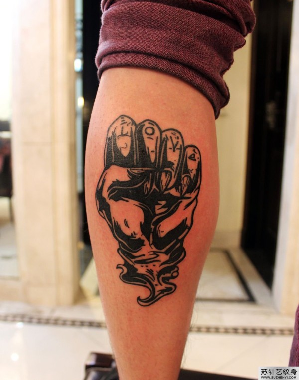 风拳头个性小腿纹身_腿部纹身图案大全_纹身图吧