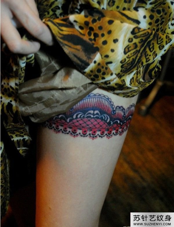 大腿性感蕾丝纹身_腿部纹身图案大全_纹身图吧