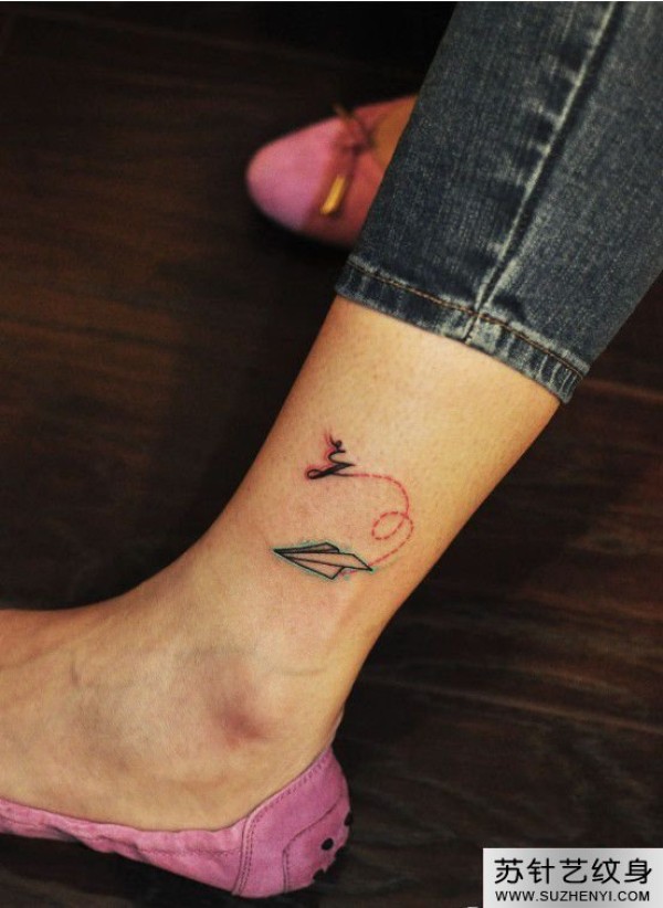 纸飞机小腿纹身图_腿部纹身图案大全_纹身图吧
