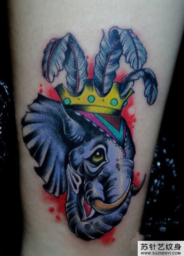 腿部皇冠小象纹身图片_腿部纹身图案大全_纹身图吧