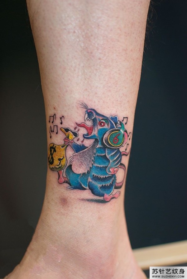 腿部听音乐老鼠纹身_腿部纹身图案大全_纹身图吧
