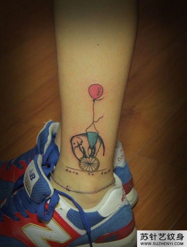 小腿走钢丝的大象纹身_腿部纹身图案大全_纹身图吧