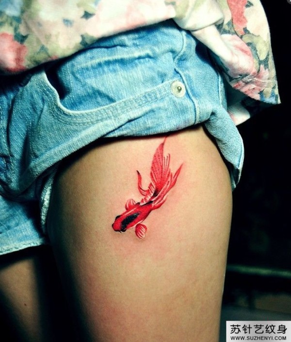 大腿红色小金鱼纹身_腿部纹身图案大全_纹身图吧