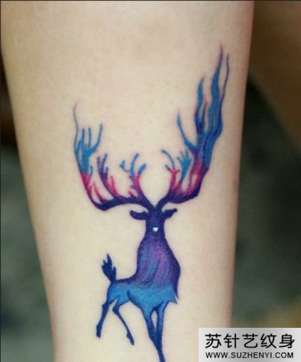渐变色麋鹿小腿纹身_腿部纹身图案大全_纹身图吧