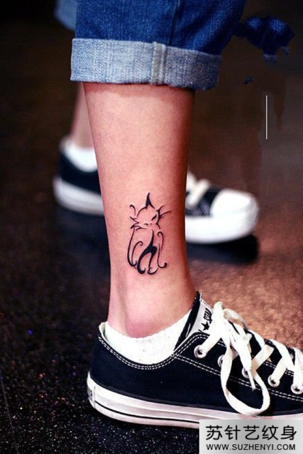 猫咪个性小腿纹身_腿部纹身图案大全_纹身图吧