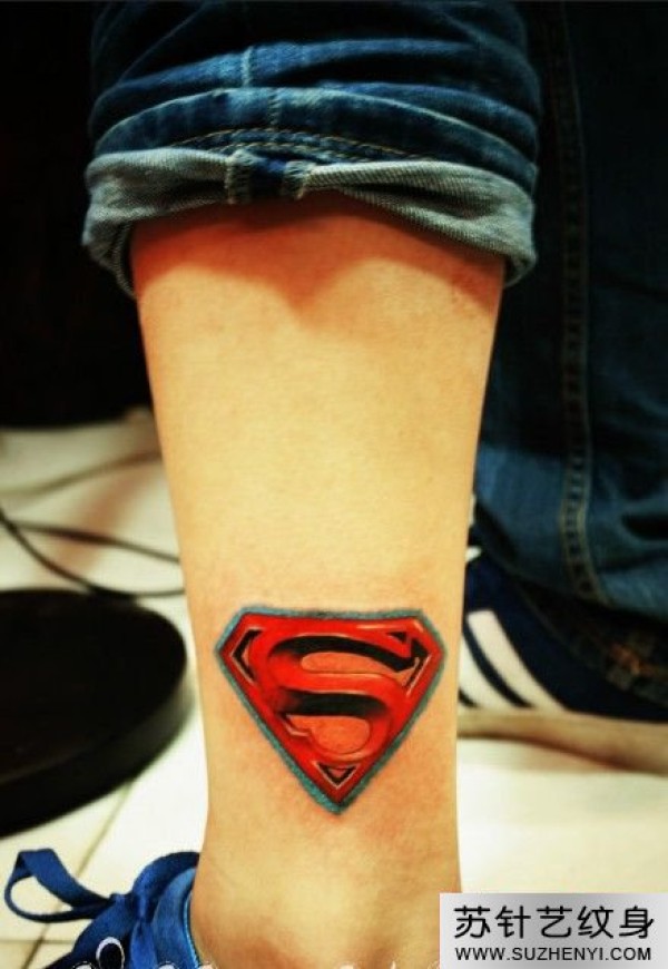 超人标志小腿时尚纹身_腿部纹身图案大全_纹身图吧