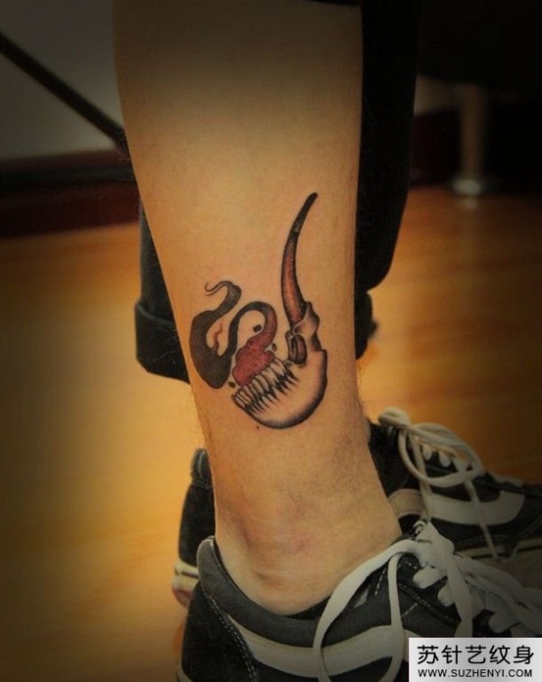 创意小腿牙齿烟斗纹身_腿部纹身图案大全_纹身图吧