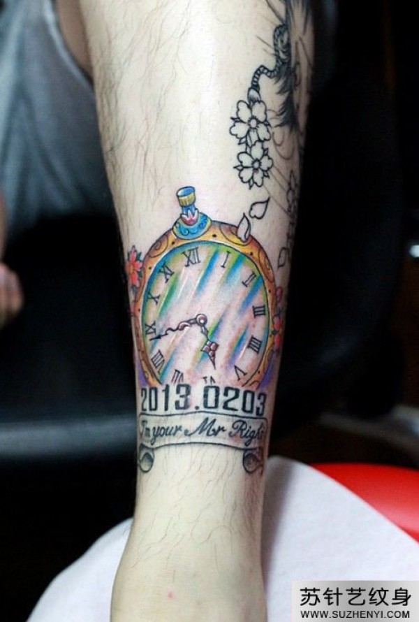 数字怀表小腿纹身_腿部纹身图案大全_纹身图吧