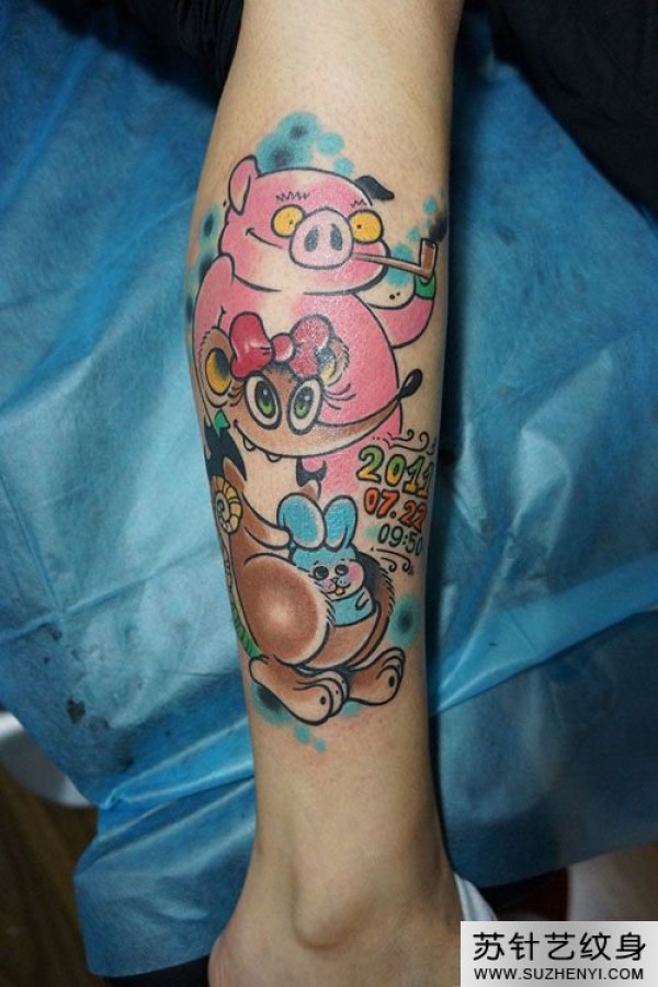 猪与袋鼠花小腿纹身_腿部纹身图案大全_纹身图吧