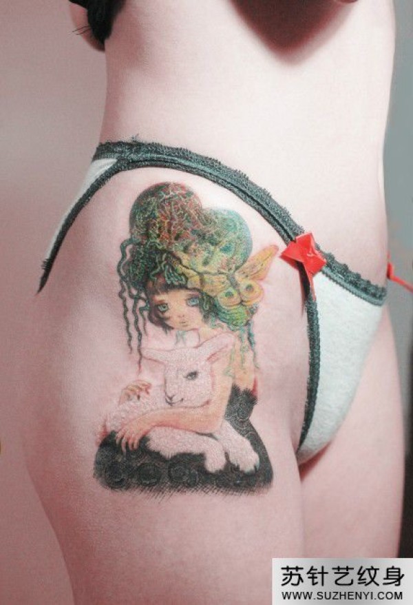 腿部彩色精灵纹身图_腿部纹身图案大全_纹身图吧