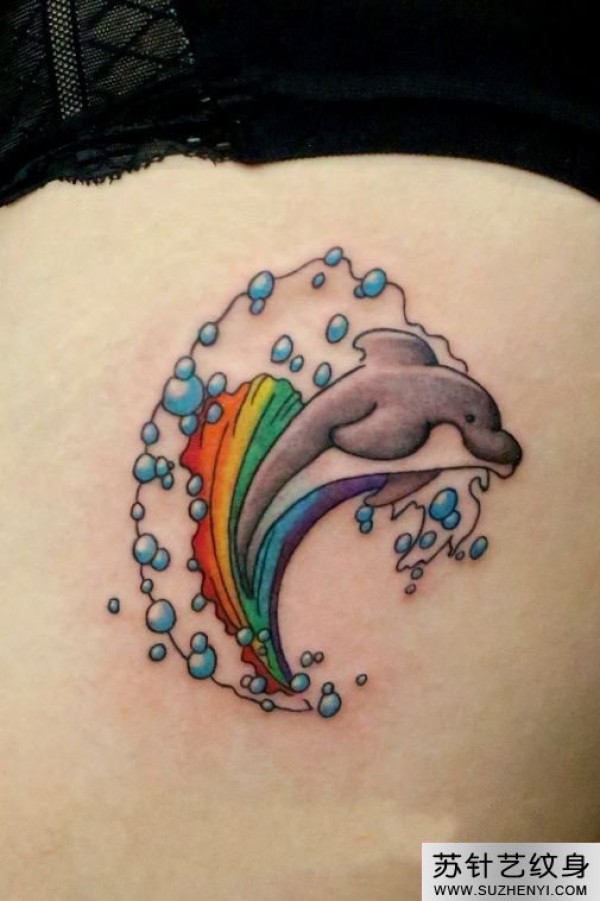 七彩海豚大腿纹身_腿部纹身图案大全_纹身图吧