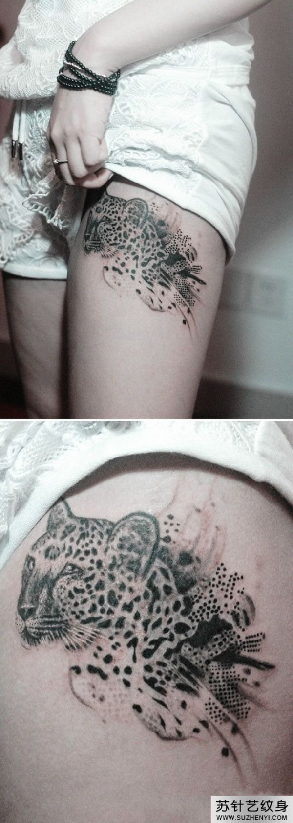 飞舞的豹子大腿纹身_腿部纹身图案大全_纹身图吧