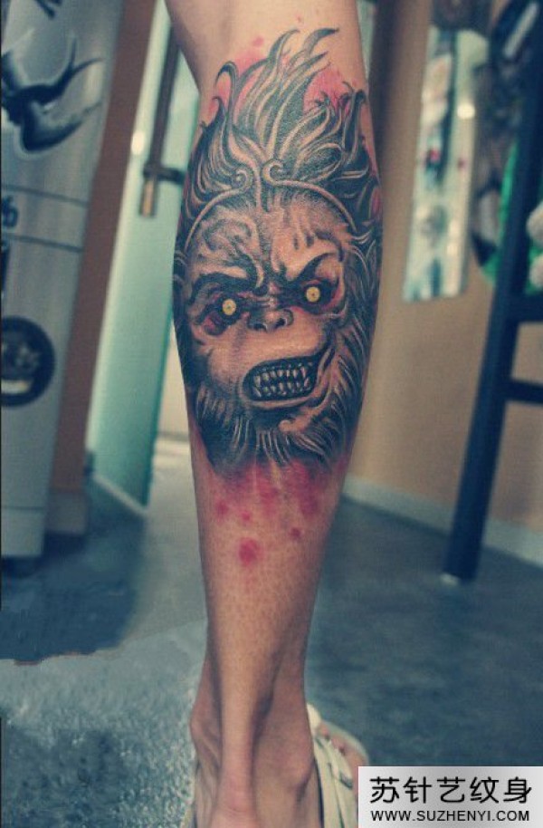 孙悟空头像小腿纹身_腿部纹身图案大全_纹身图吧