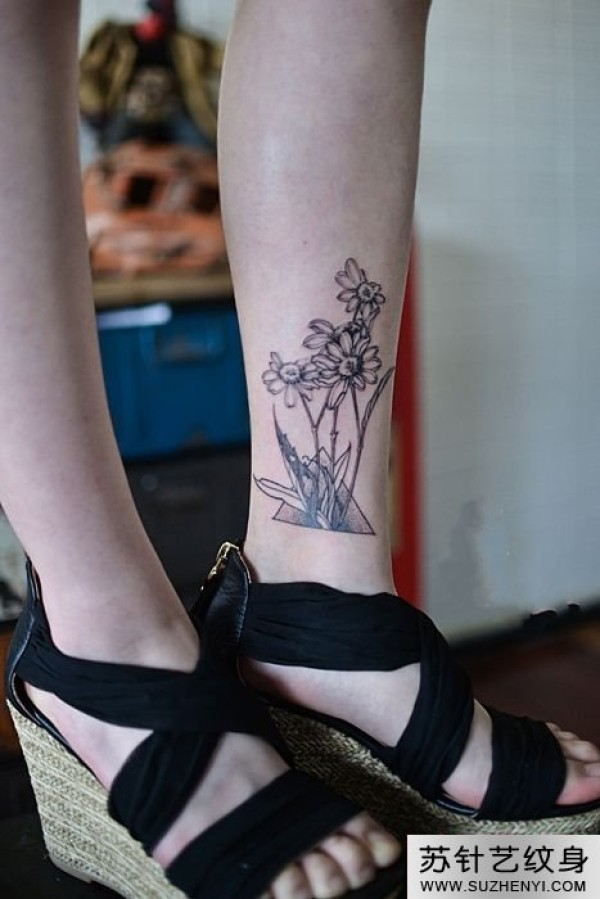 小雏菊小腿纹身_腿部纹身图案大全_纹身图吧