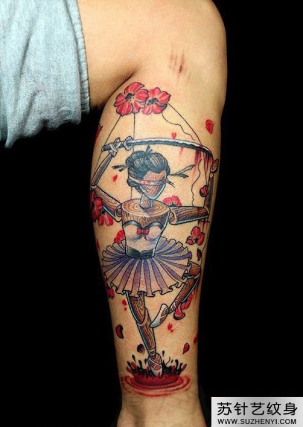小腿芭蕾艺伎舞娘纹身_腿部纹身图案大全_纹身图吧