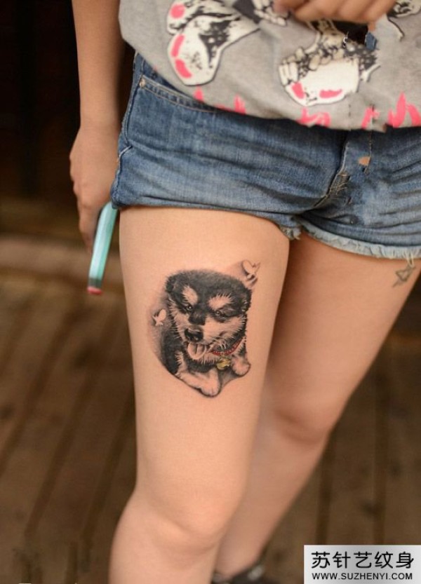大腿小哈士奇头像纹身_腿部纹身图案大全_纹身图吧
