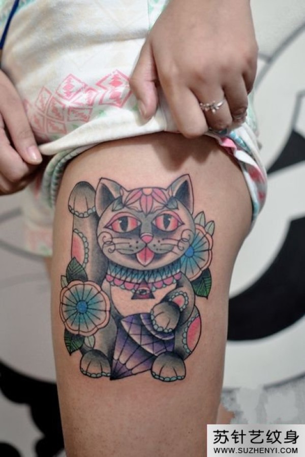 招财猫大腿纹身_腿部纹身图案大全_纹身图吧
