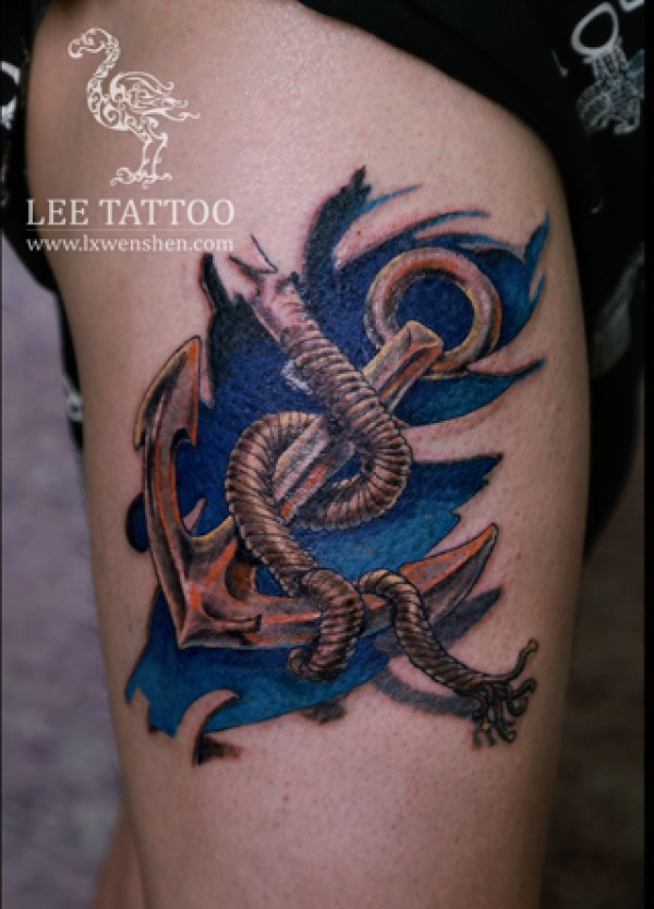 大腿上的船锚纹身图案_腿部纹身图案大全_纹身图吧