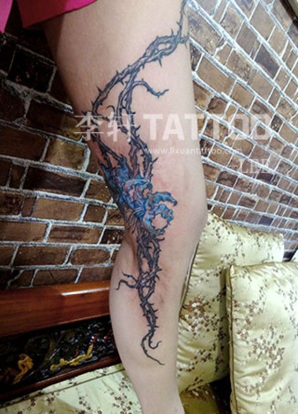李轩作品腿部荆棘纹身图案_腿部纹身图案大全_纹身图吧