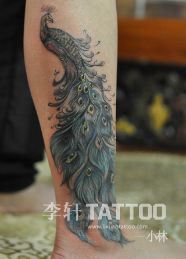 小林作品小腿孔雀纹身图案_腿部纹身图案大全_纹身图吧