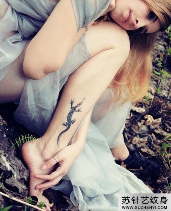 美女腿部壁虎纹身_腿部纹身图案大全_纹身图吧