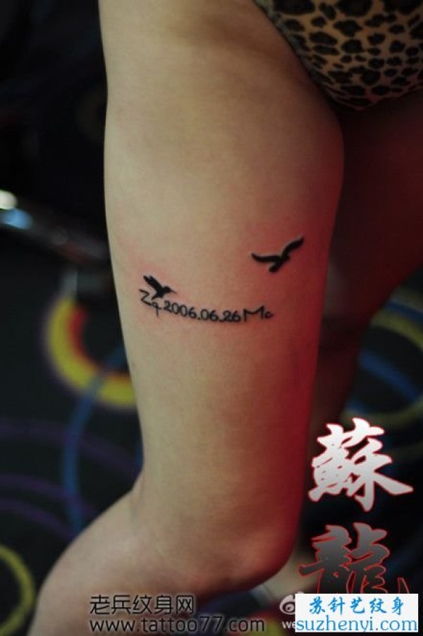 时尚的腿部数字小鸟纹身图案_腿部纹身图案大全_纹身图吧