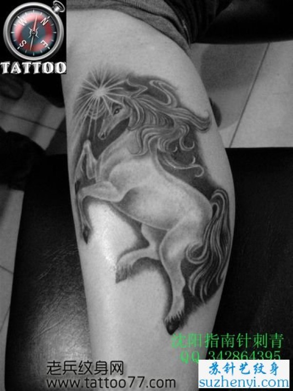 腿部独角兽纹身图案_腿部纹身图案大全_纹身图吧