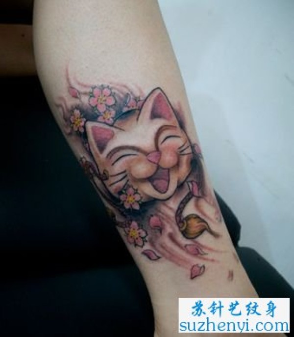 腿部笑脸猫咪纹身_腿部纹身图案大全_纹身图吧