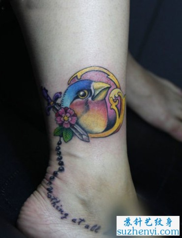 腿部彩色小鸟纹身_腿部纹身图案大全_纹身图吧