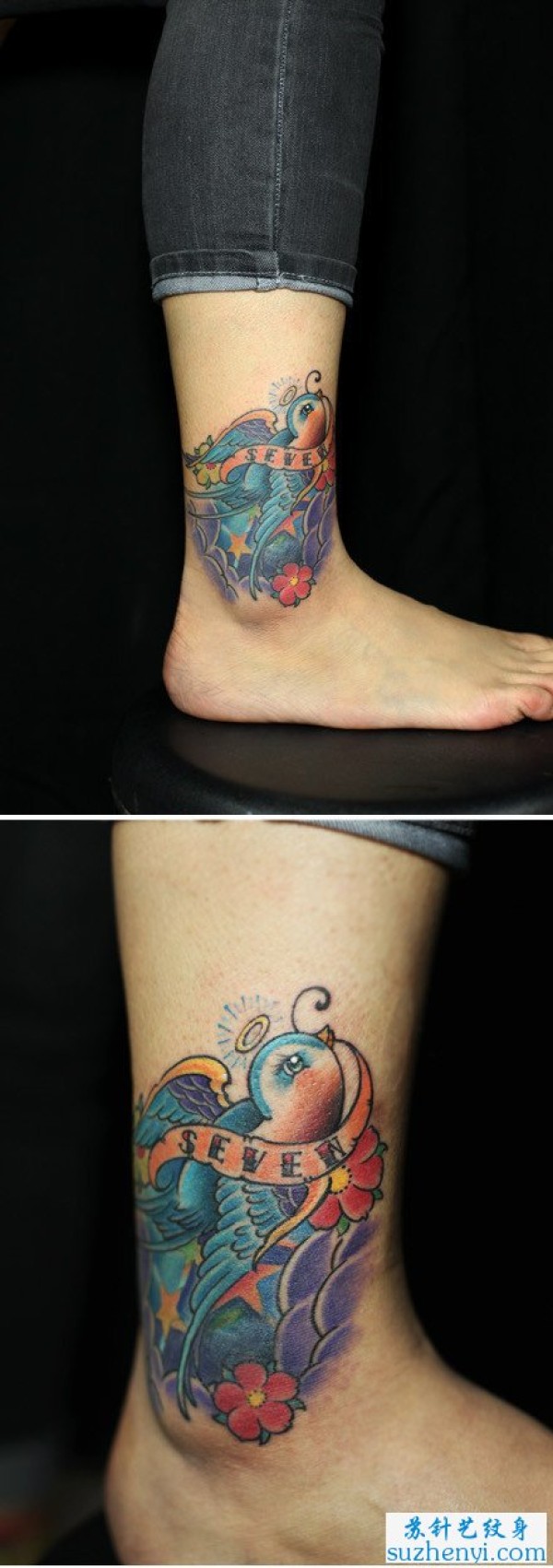 腿部彩色燕子纹身_腿部纹身图案大全_纹身图吧