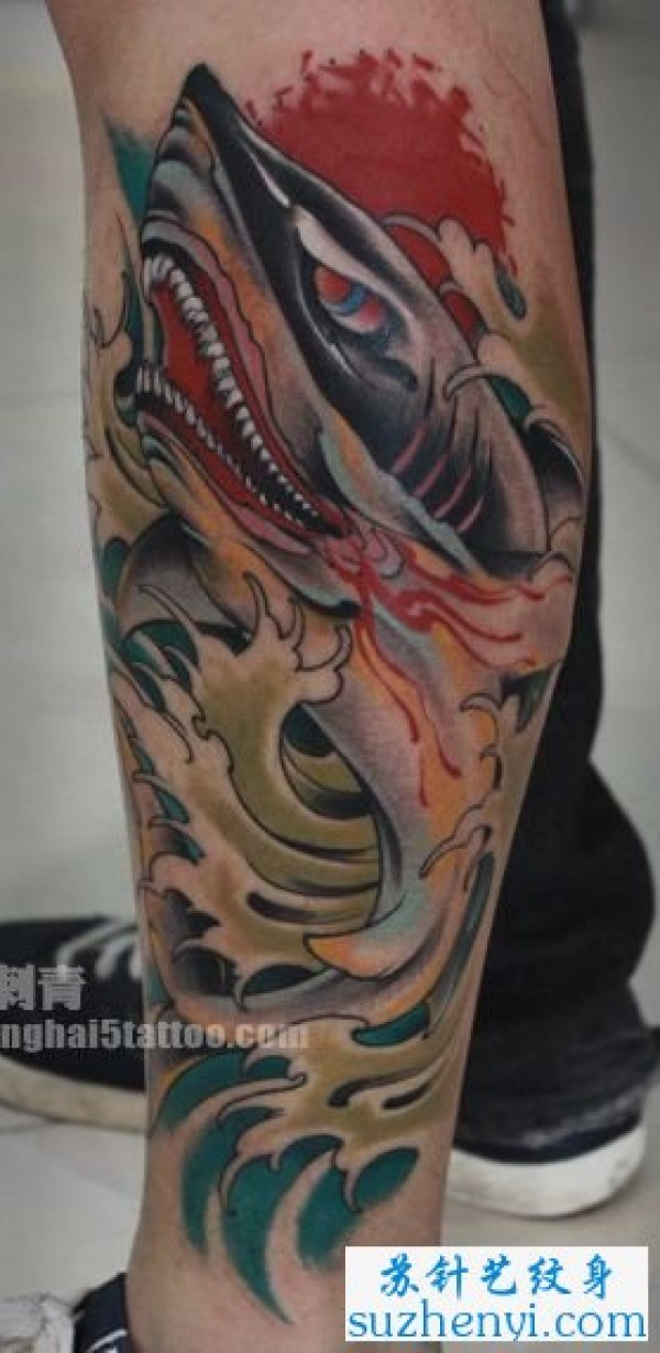 腿部鲨鱼纹身_腿部纹身图案大全_纹身图吧