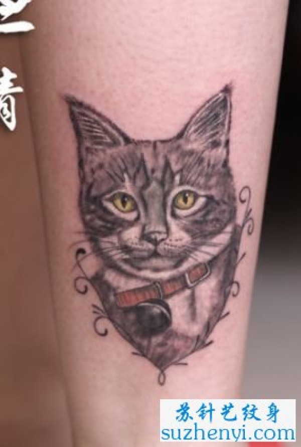 小腿猫咪纹身_腿部纹身图案大全_纹身图吧